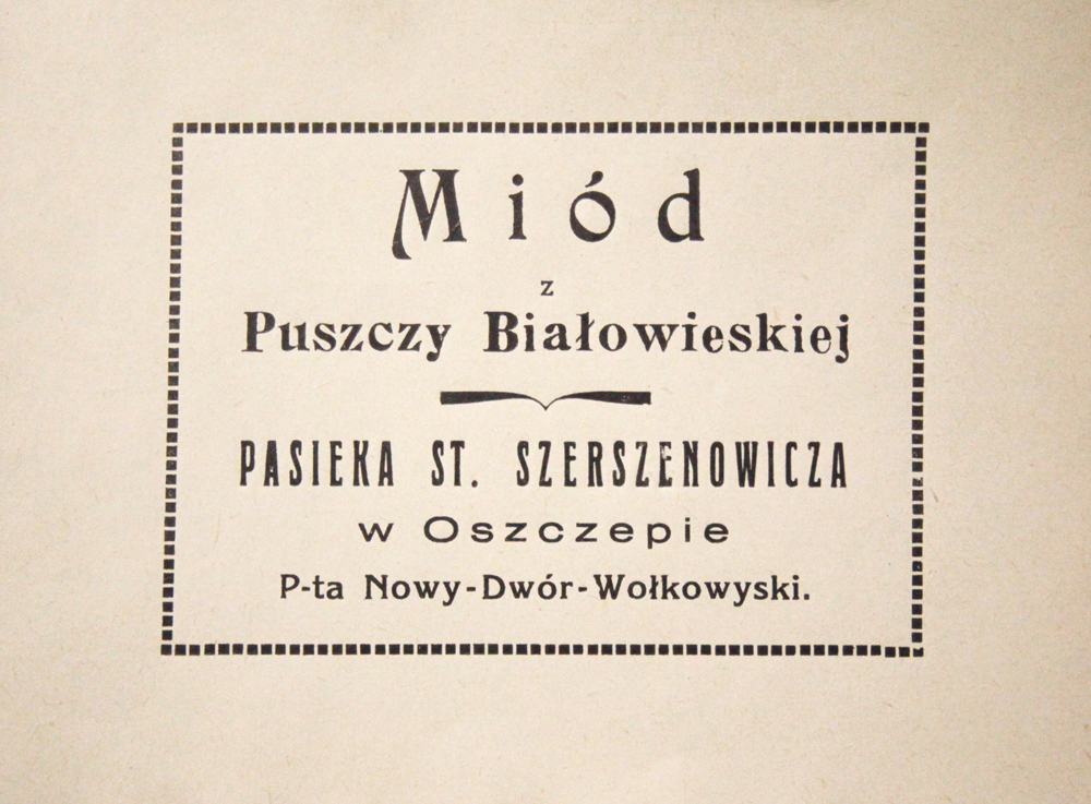 Etykieta miodu z pasieki St. Szerszenowicza Świadek: Andrzej Szerszenowicz Projekt: Ochrona lasów i przyrody Puszczy Białowieskiej