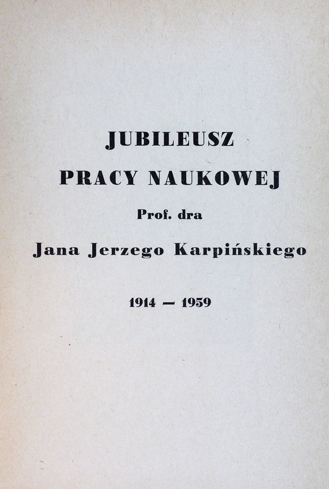 Broszura wydana z okazji jubileuszu pracy naukowej prof. dr. hab. Jana Jerzego Karpińskiego.