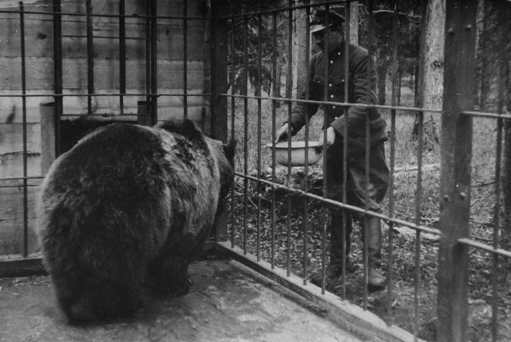 W Niedźwiedziówce Jan Szlachciuk karmi niedźwiedzie w Białowieskim Parku Narodowym Świadek: Helena Figlarz Projekt: Ochrona lasów i przyrody Puszczy Białowieskiej